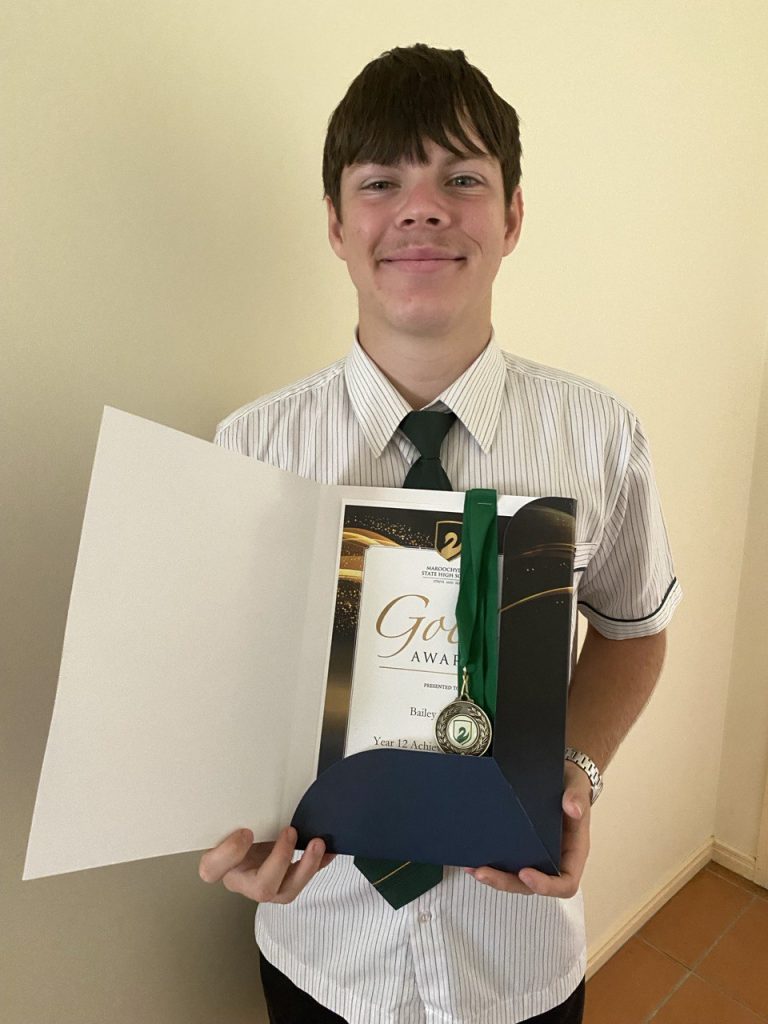 Congratulations Bailey: Gold Achievement Award, Top of the Class for Furnishing Skills & already started his apprenticeship. Goal-setting and the Resilience to balance work and study.