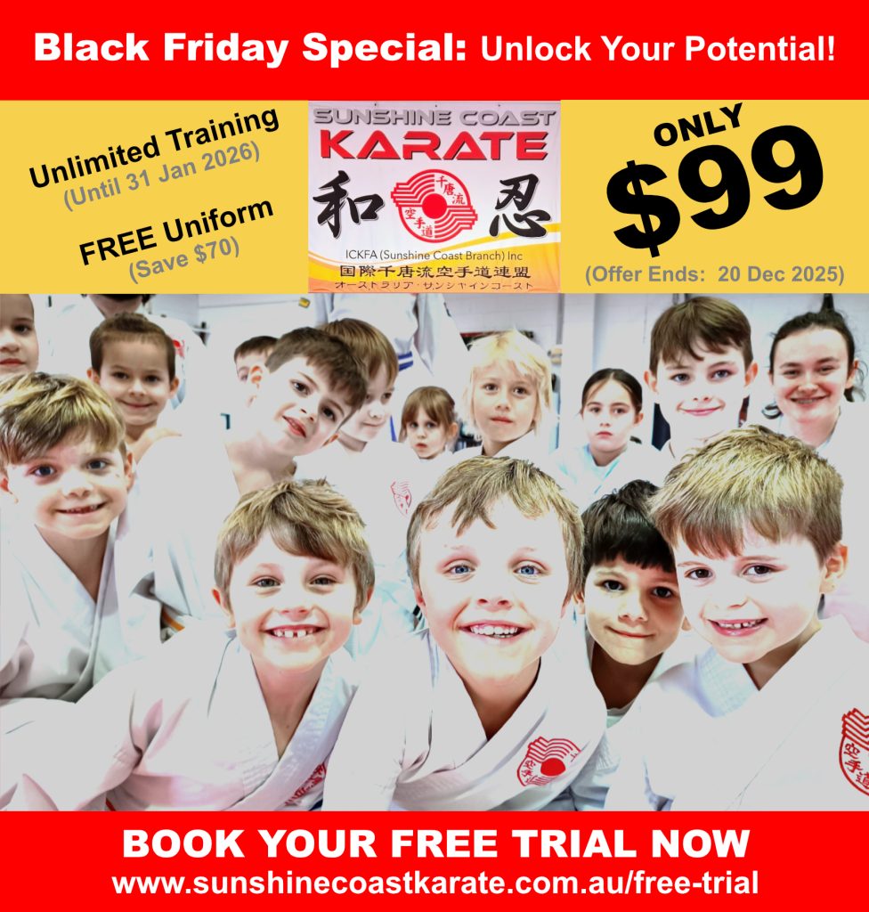 Black Friday usually means crowded shops, fleeting trends, and buying things that might be forgotten by Christmas. But at Sunshine Coast Karate, we believe the best investments aren’t things you hold in your hands—they are the qualities you hold in your heart and mind.