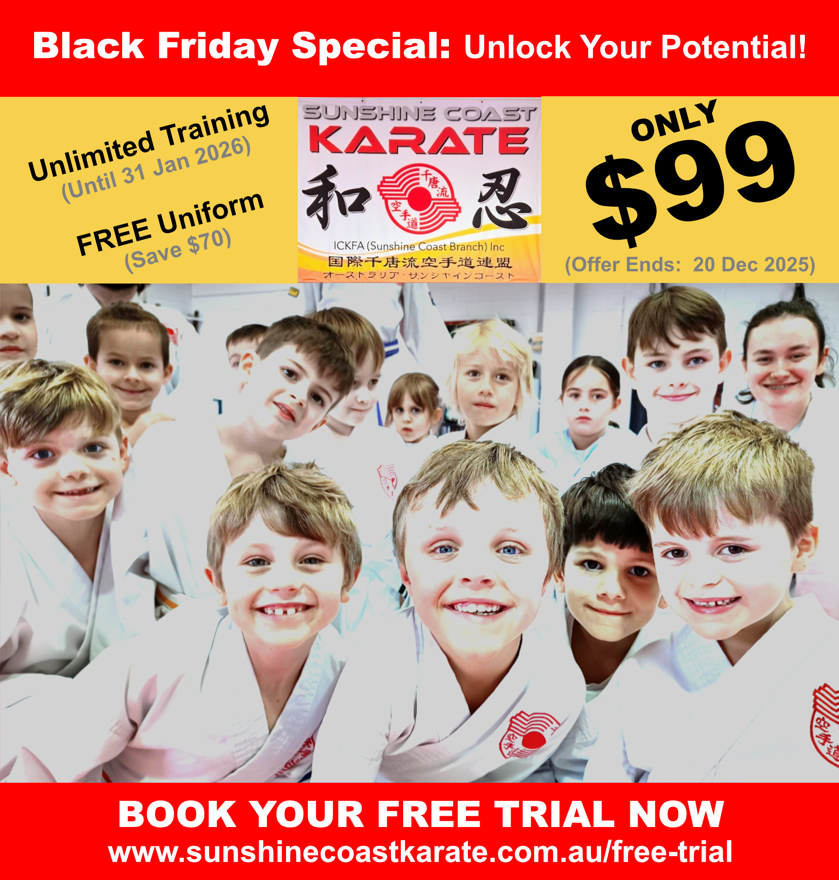 Our Exclusive Black Friday Offer We want to make it easier for you to take that first step onto the mats at our Maroochydore dojo.