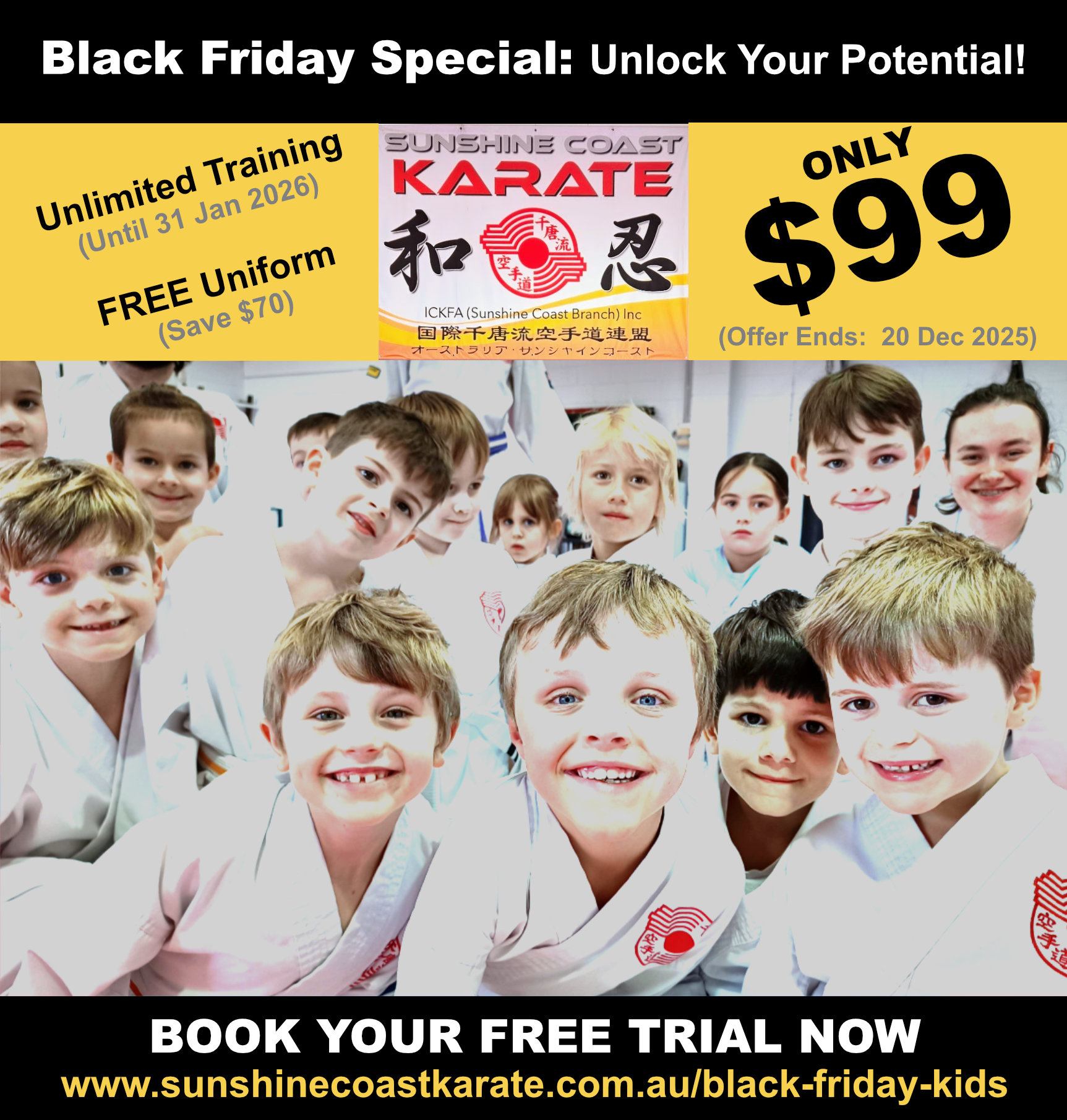 Sunshine Coast Karate teaching excellence in martial arts and in life since 2000. Serving the community and residents of Maroochydore, Kuluin, Kunda Park, Bli Bli, Diddillibah, Buderim, Rosemount, Mudjimba, Mooloolaba, Alexandra Headland, Pacific Paradise, Twin Waters, Mountain Creek & Nambour.